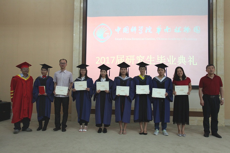 六月盛夏,流光溢彩,激情四射。又一批华南植物园的莘莘学子即将离开这熟悉而美丽的地方,开启崭新的征程。6月16日上午9点,中国科学院华南植物园2017届研究生毕业典礼在一号实验楼第一会议室隆重举行。伴着《义勇军进行曲》庄严高亢的旋律,本次毕业典礼正式拉开了帷幕。毕业典礼由研究生部部长赖志敏老师主持,参加本次典礼的嘉宾有张福生书记、蒋跃明副主任等园领导、学位评定委员会委员、研究生导师、管理部门干部,BIOMIGA和普邦园林公司的代表以及2017届全体毕业生。