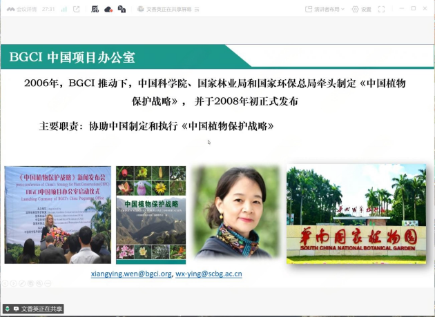 此次研讨会设置了五场专题报告与一场集中研讨。中国科学院华南植物园文香英高工作了题为《全球生物多样性标准(TGBS)——提升生态系统恢复中的生物多样性成效》的开场报告,系统梳理了国际生物多样性标准的最新进展、核心指标体系及其在生态修复中的实践路径,并结合国内外典型案例,深入解析了标准评估与认证的具体流程。报告指出我国已在造林规模和绿色金融领域走在前列,TGBS可作为重要工具,助力我国在生物多样性保护成效的质量方面进一步引领全球。同时转达了BGCI秘书长Paul Smith博士的期望:希望中国将TGBS纳入政策体系,并愿意支持在中国政府机构内设立TGBS HUB并开展评估师培训工作。