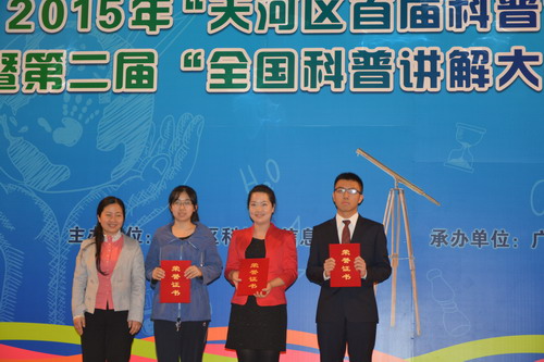 华南植物园选手宁敏华以一曲动听的《兰花草》作为讲解开场,一开嗓就赢得了观众热列掌声,随后她用通俗易懂而又生动幽默的语言将兰花是怎样利用食诱或色诱的方法骗得昆虫为其传粉的科学知识娓娓道出,植物聪慧的生存故事深深吸引了现场听众,讲解获得了评委的一致好评,最后以优异的成绩荣获“天河区十佳科普使者”的称号,并成功晋级下一轮的“全国科普讲解大赛选拔赛”。