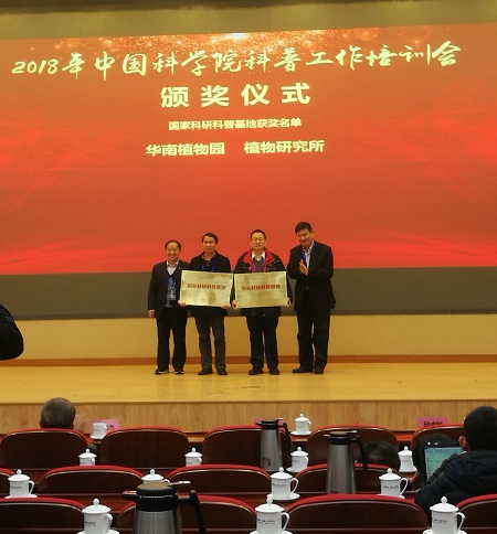 会上,华南植物园被中国科学院、科学技术部联合授予“国家科研科普基地”称号。