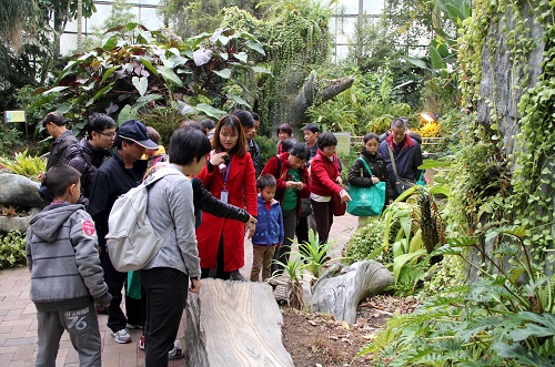 报告结束后,由广州市十佳科普讲解员王彤、谢丽青带领市民参观世界植物奇——华南植物园温室群景区。热带雨林室、沙漠植物室、高山/极地植物室、奇异植物室、植物水族馆与室外稀树草原景观遥相呼应,浑然一体。市民们徜徉于多姿多彩的植物王国,跟随讲解老师“一日看世界”,探索植物世界的奥秘。市民们在欣赏奇花异果时,也了解学习到各种植物科学与生态知识。