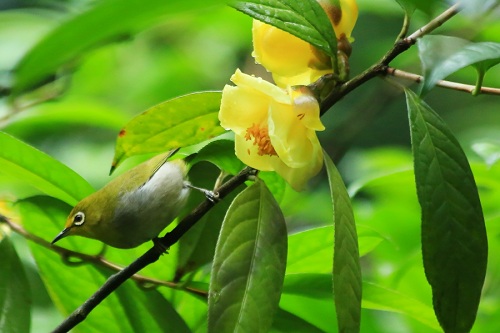 金花茶和暗绿绣眼鸟