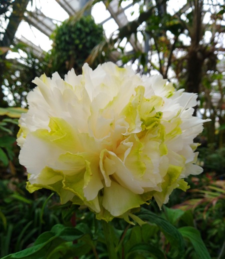细细风送袅袅香,迟迟日暖牡丹芳。妆扮洛阳春天的牡丹,给南国的冬天带来了春的气息——粉红的杨贵妃、蓝色的蓝月亮、黑色系冠世墨玉、白色的白王狮子、纯黄的海黄、艳红的芳纪、绿色的绿幕隐玉、还有嫁接的什锦牡丹……九大色系十个花型,华南植物园的温室群景区花如海、人如潮。