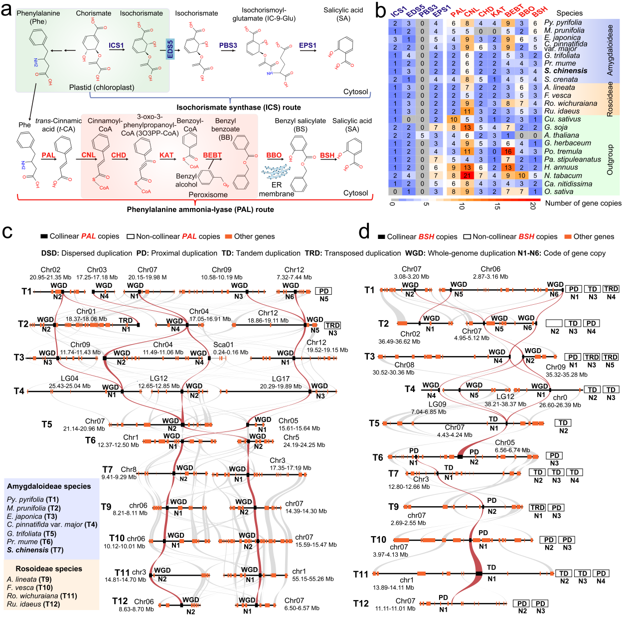 图1. 蔷薇科水杨酸(SA)生物合成通路的进化分析